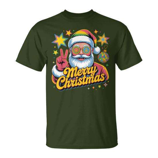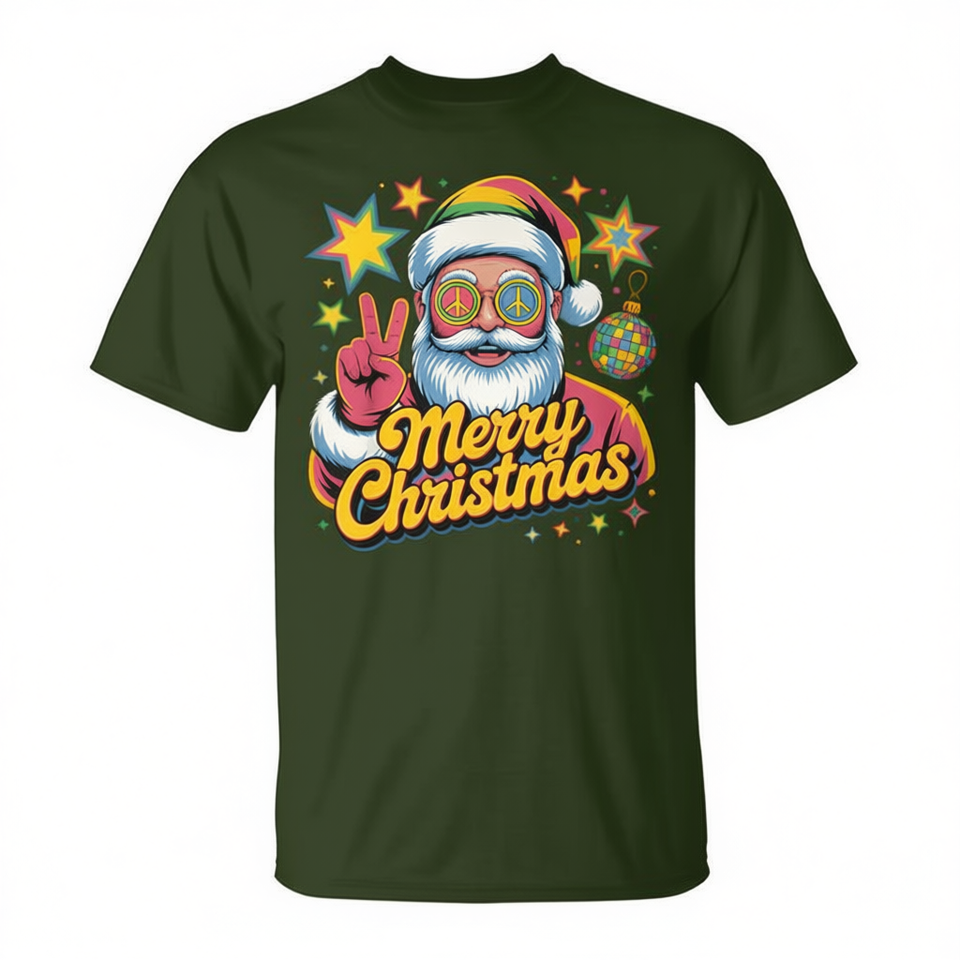 T-shirt in stile anni '70 con Babbo Natale che saluta, in stile Groovy Christmas