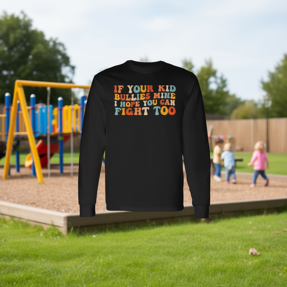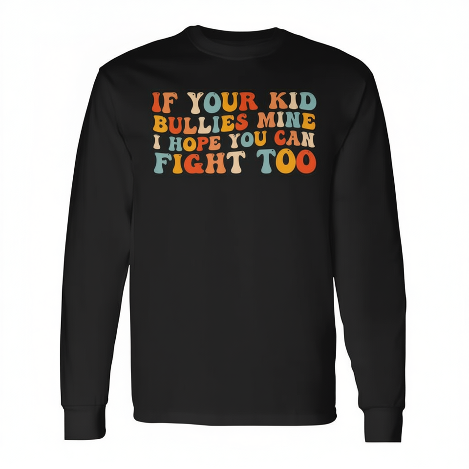 T-shirt a maniche lunghe per bambini con stampa 'Se tuo figlio mi aggratta, spero che tu possa combattere anche tu' - T-shirt promozionale