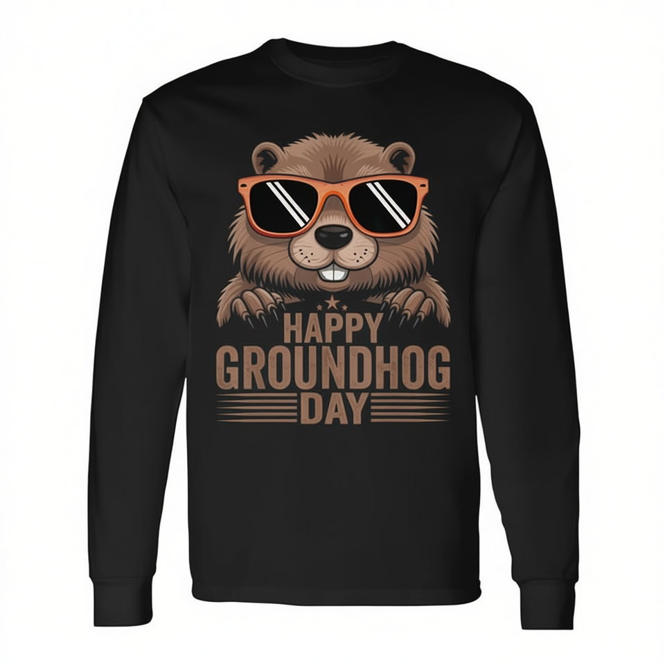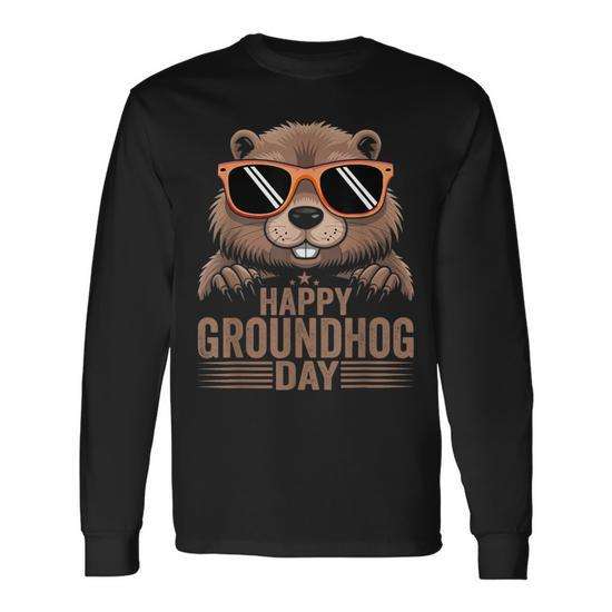 Groundhog Day Celebration T-Shirt Long Sleeve Animal Lover Design Happy Groundhog Day Print