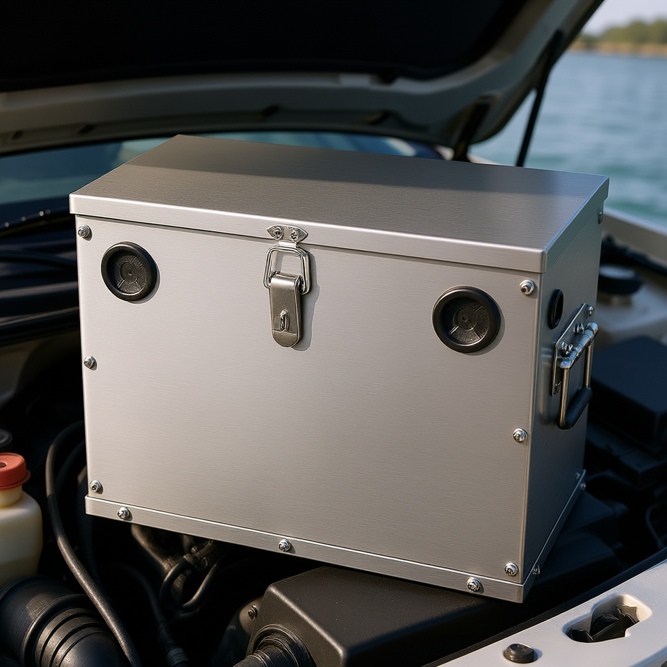 Stainless Steel Battery Box Group 24 31 Marine Lock Handle Rubber Grommet Cable Holes For Cars