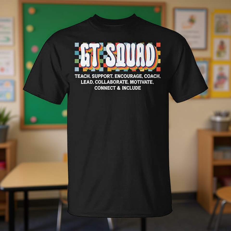 Gt Squad Special Education Team Silk Screen Printed Crew Neck Short Sleeve Unisex T-Shirt for Teachers and Staff