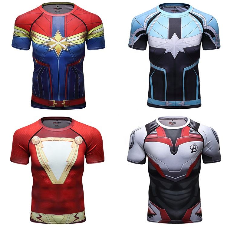Guangzhou 2018 Poliestere Spandex di Sport Camicie 3D Anime Supereroe Spiderman Capitan Stampato T-Shirt