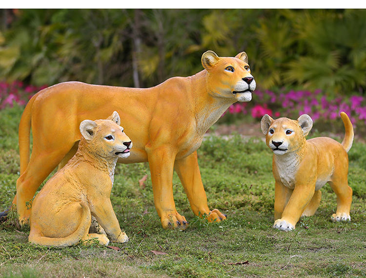 Guangzhou prezzo di fabbrica decorazione esterna a grandezza naturale in resina di vetro leone statua scultura giardino ornamenti leone