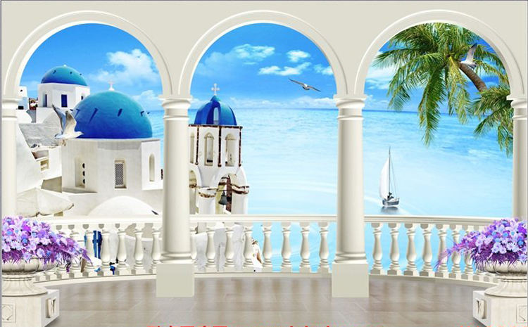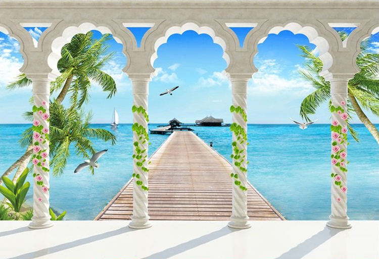 Guangzhou ihouse paesaggio vista mare colonna romana mare cielo blu con nuvole bianche 3D murale carta da parati