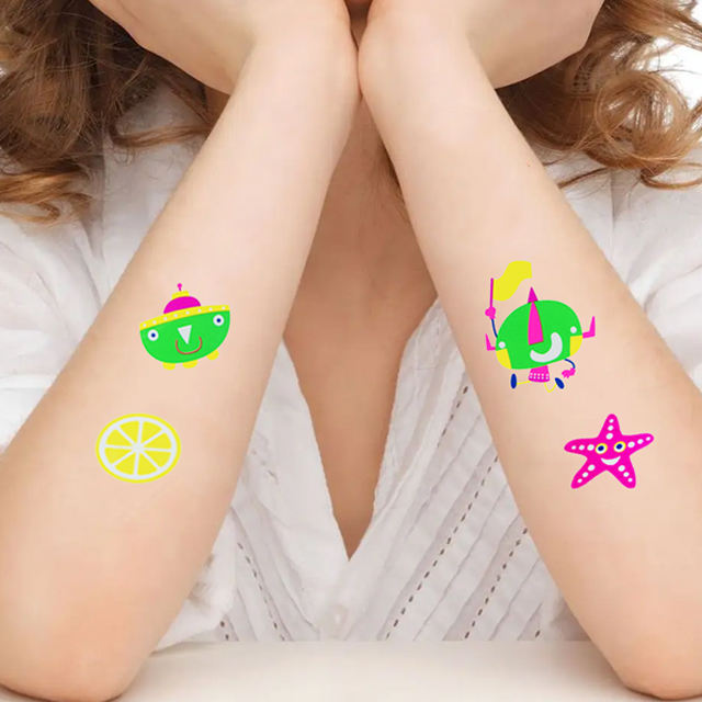 Guangzhou Wholesale Body Art Tattoo Glow in the Dark Paint Waterproof Beautiful Kids Tattoos Stickers Anime Temporary Tattoo