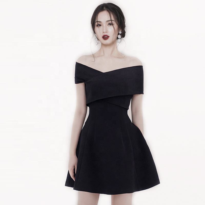 Guangzhou Wholesale Supplier Women Clothing One Piece Sexy Party Women's Evening Black Dress