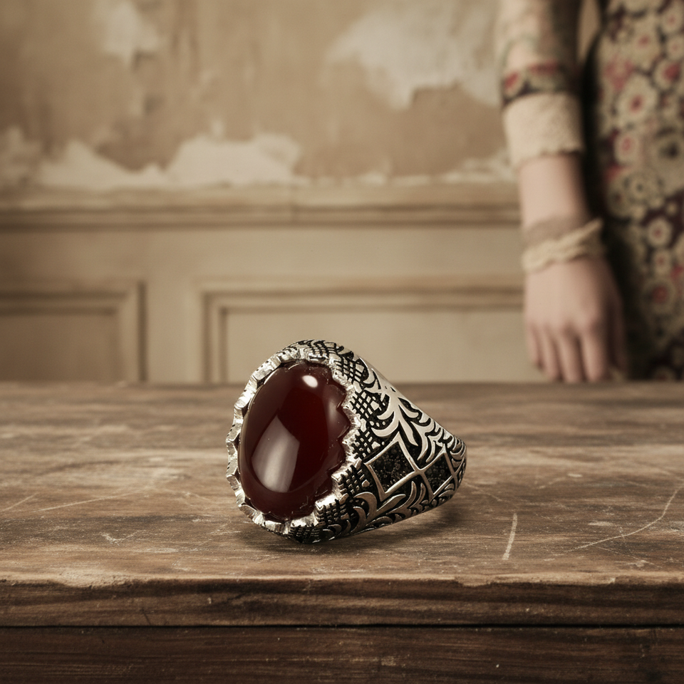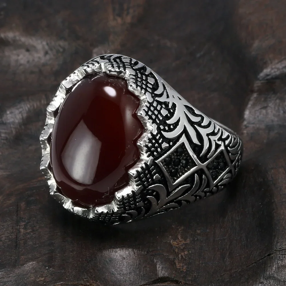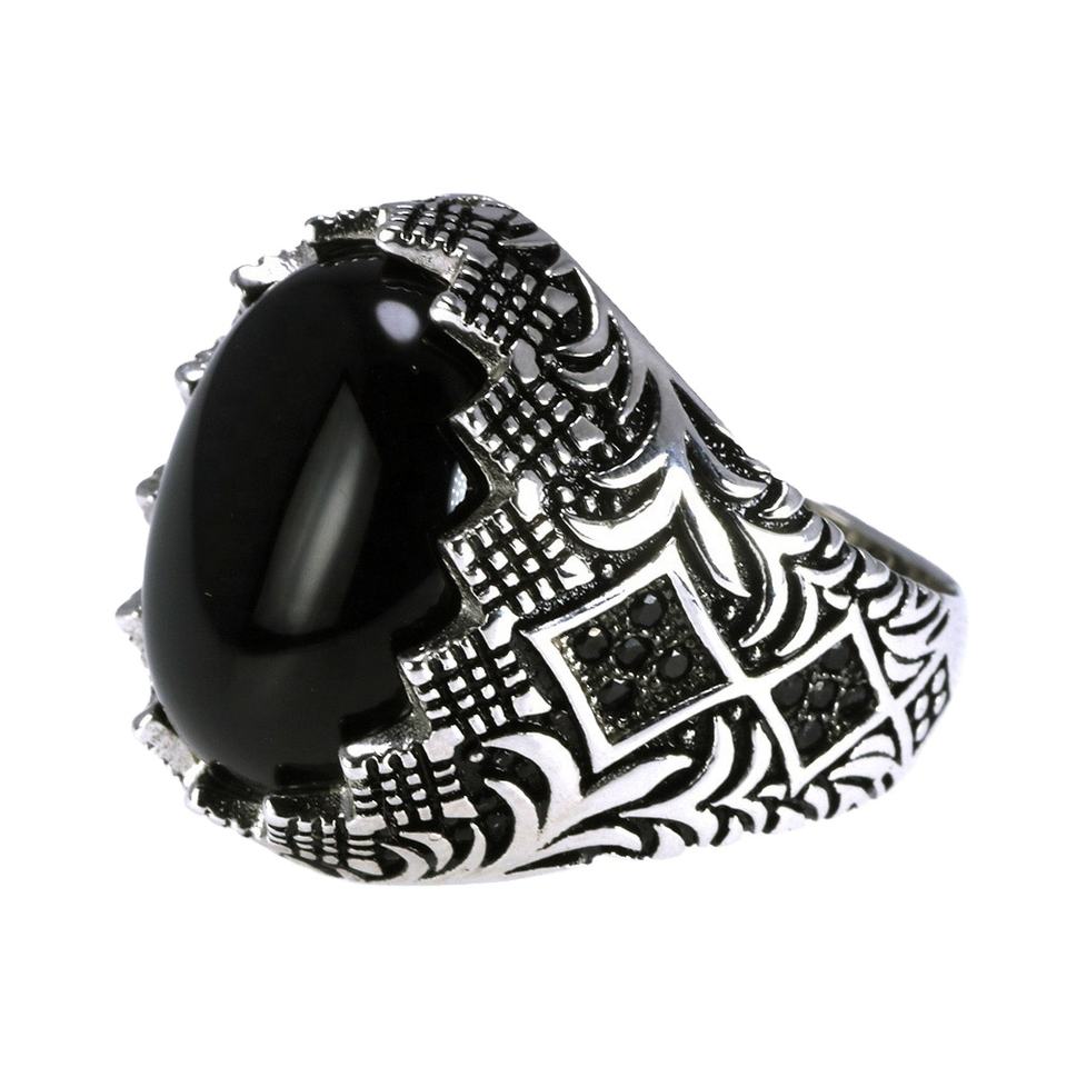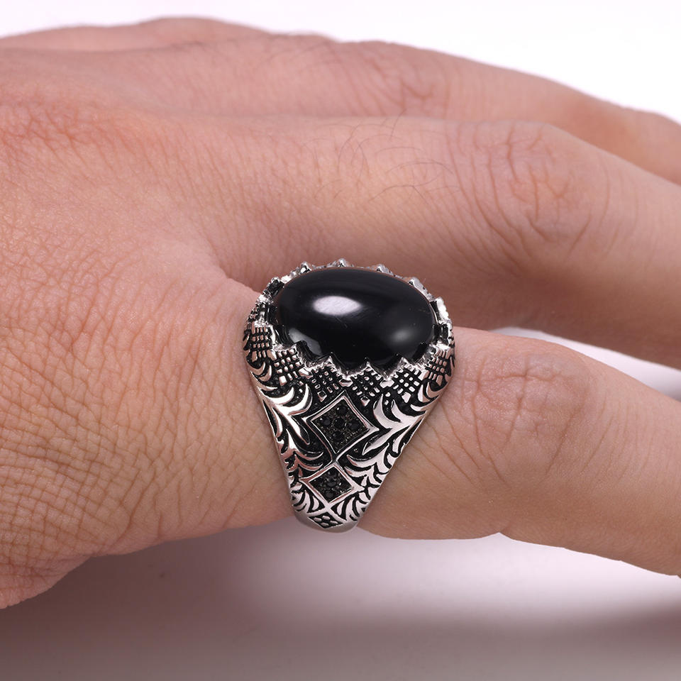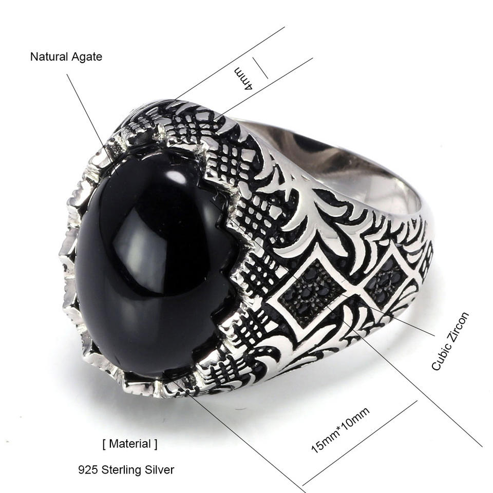 Garantito al 925 In Argento Sterling Anelli Neri Per Gli Uomini Retro Vintage Fiori Turco Anello Gioielli Con La Pietra Turchia Monili