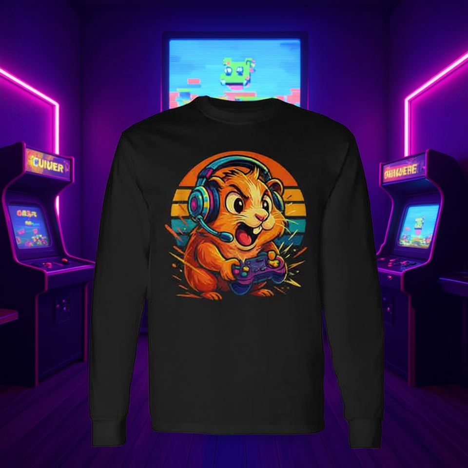 T-shirt a maniche lunghe Guinea Pig Gamer con design di videogiochi, abbigliamento unisex