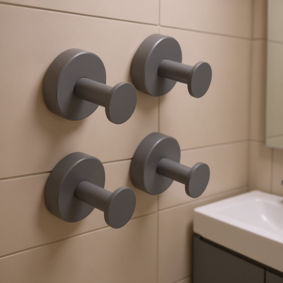 Gancio appendiabiti grigio canna di fucile, confezione da 4, montaggio a parete, moderno e minimalista, per bagno, camera da letto, con viti, per ingresso
