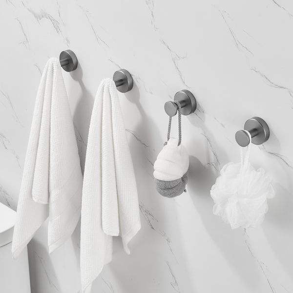 Gun Grey Towel Hook 4-Pack Base Wall Hanging Coat Hook Screws for Entry Shoe Cabinet Wardrobe Bathroom Bedroom Robe Hooks