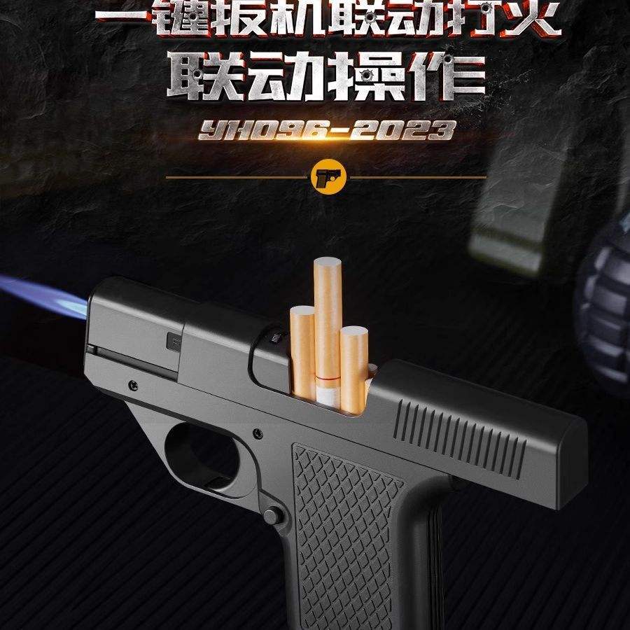 Accendino Gonfiabile a Forma di Pistola, Portasigarette Antivento per Sigarette Spesse e Sottili