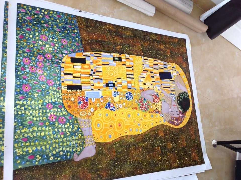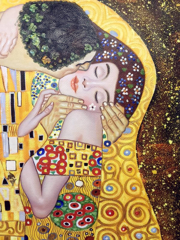 Gustav Klimt's Famous 'Tree of Life' Kiss Wall Art Handpainted Oil Canvas with Gold Foil for Living Room Decorative Stock