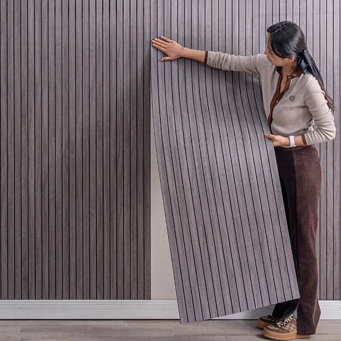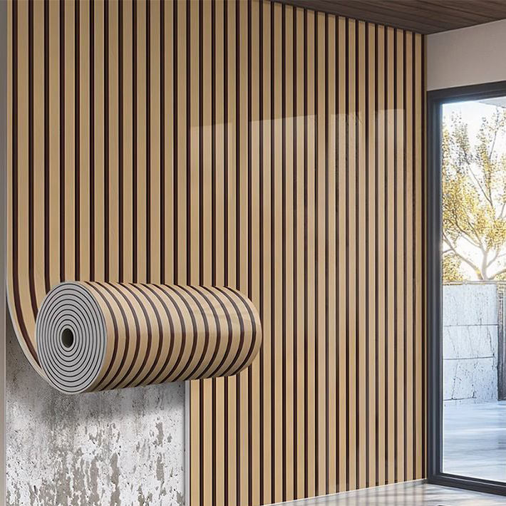 Carta da Parati Autoadesiva Moderna in PVC Goffrato con Motivo a Listelli in Legno per Palestre, Centri Commerciali, Studi, Hotel e Reception