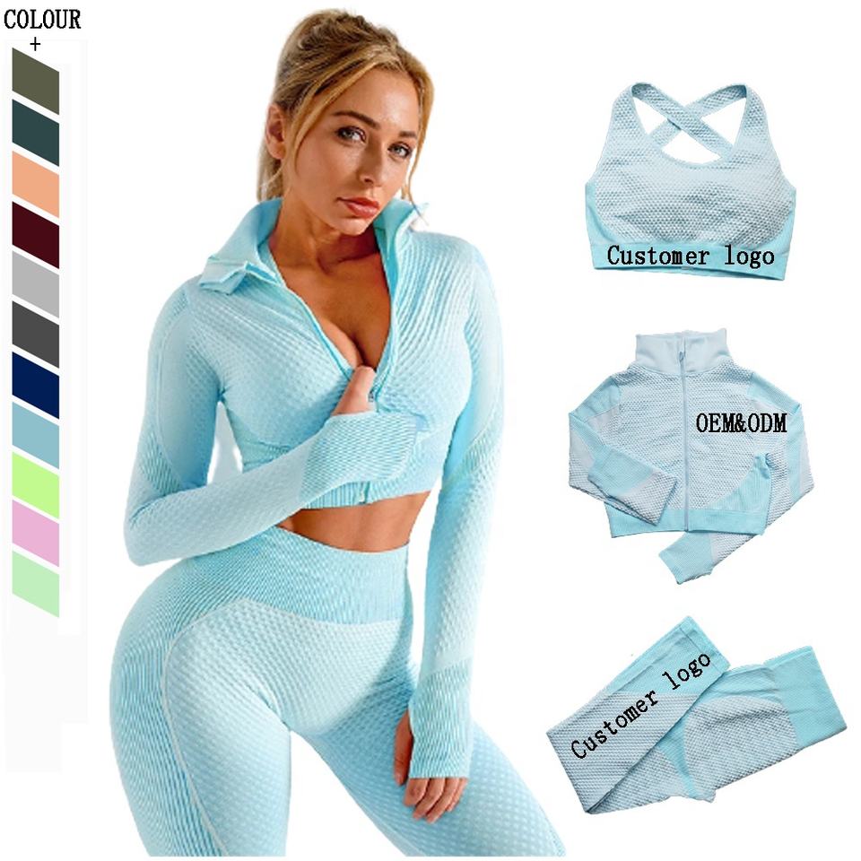 Gym Wear Female Sport Set Fitness Sport Suit - Seamless Activewear Running Workout Exercise Women Long Sleeve Yoga Gym Sets