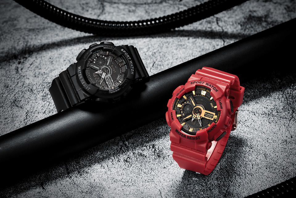 Alarm, chronograph, Day/Date, Water Resistant, waterproof, Luminous, Week Display, Shock Resistant, Stop Watch, Back Light