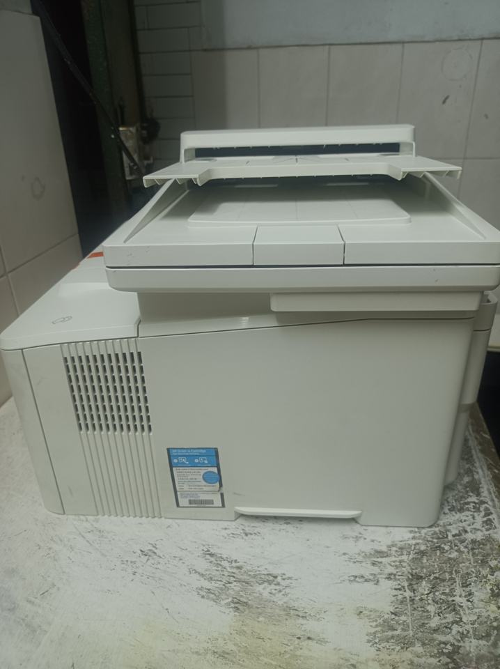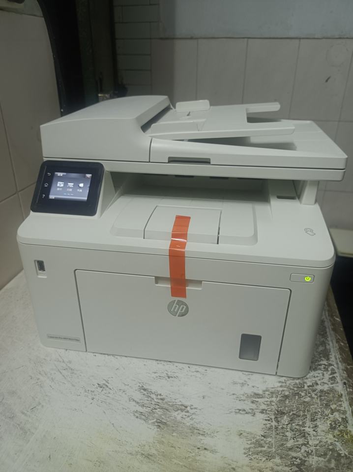 Stampante multifunzione laser monocromatica A4 H-P MFP M227fdn con funzioni di stampa, copia, scansione e fax.