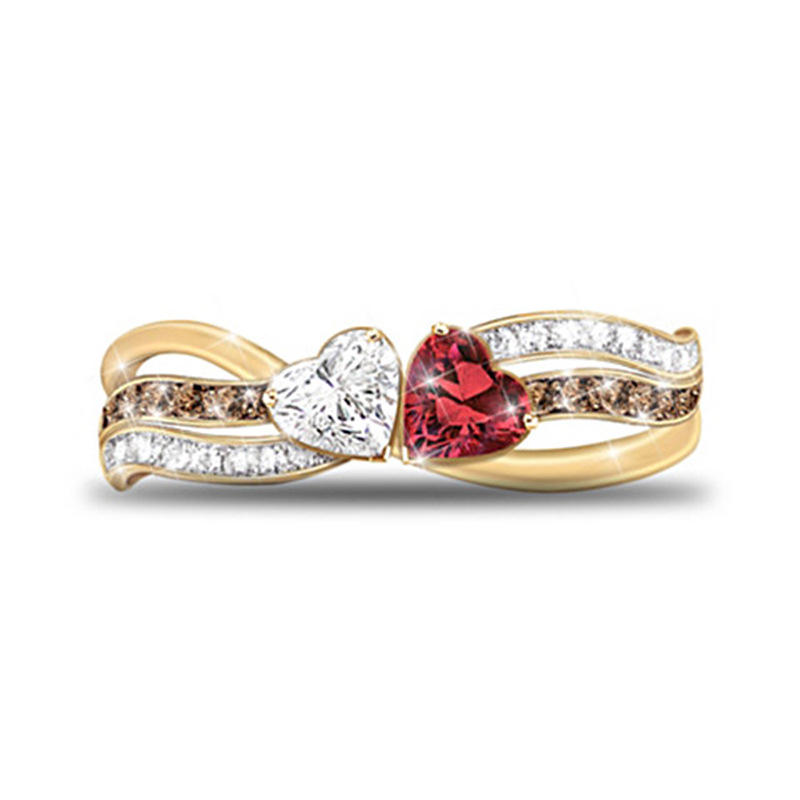 H086 Anello di Fidanzamento a Forma di Cuore con Cristalli e Strass, Placcato in Oro 18K, Gioiello Raffinato da Donna con Incastonatura a Pavé