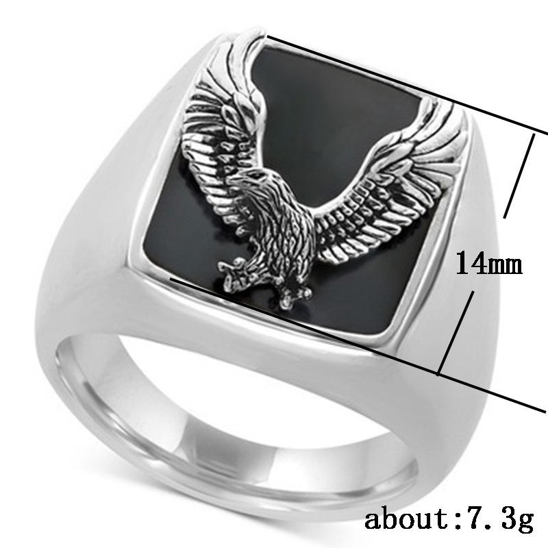 H090 Men's Eagle Ring Black Onyx Square Bezel Setting Fashion Statement Gift Jewelry