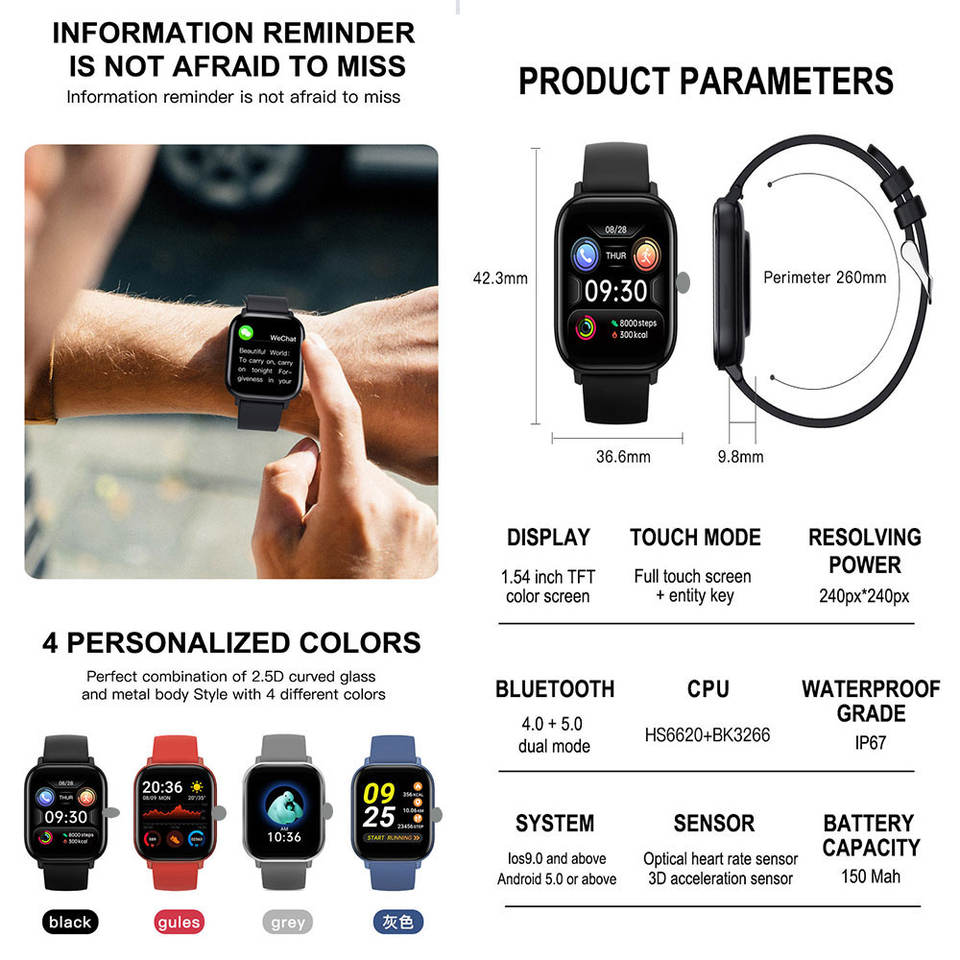 Calendario, Alarm clock, Tempo del mondo, Riserva di carica, Luminoso, Monitoraggio del sonno, Fitness Tracker, Calcolatrici, Passometro, Promemoria chiamata, Rispondi alla chiamata, Messaggio Push, Mood Tracker, Promemoria messaggio, Comporre chiamata, Frequenza cardiaca tracker, Musicale interattivo, Navigazione di GPS, Il pagamento, Banda del braccialetto della chiamata di telefono Smart Watch H10Funzione