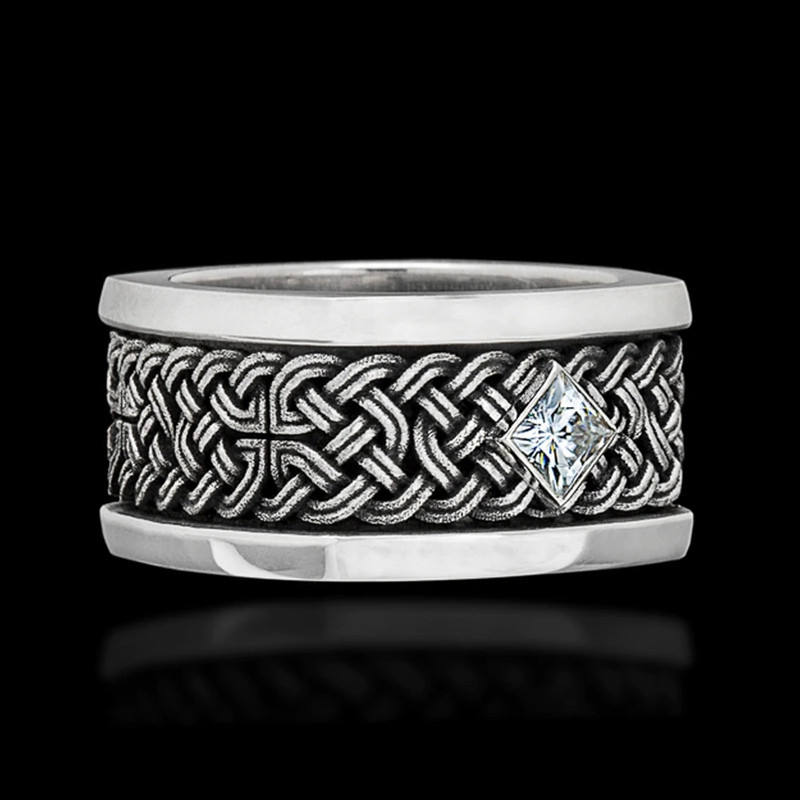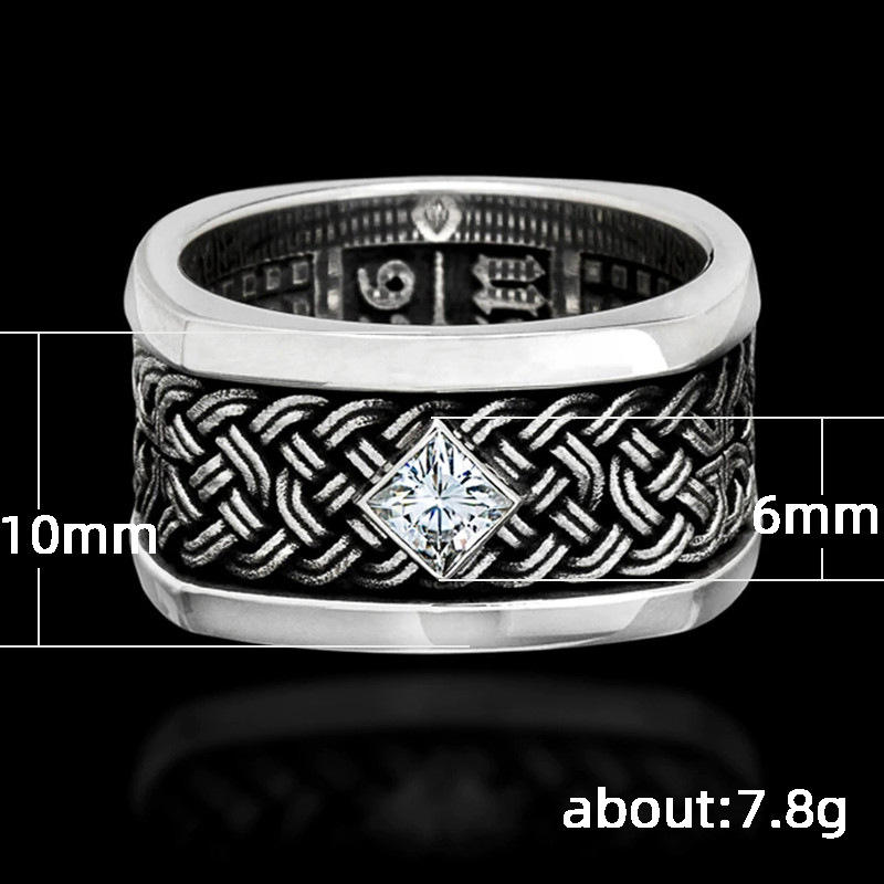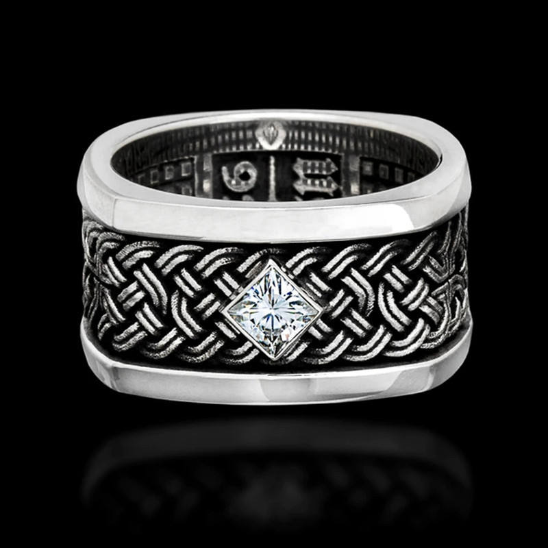 H127 Men's 925 Silver Ring With Princess Cut Diamond Geometric Design Everyday Wear Bezel Setting