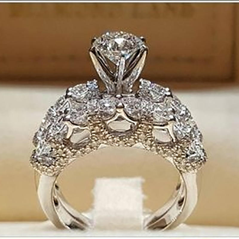 H135 White Gold Diamond Ring Women's Engagement Natural Round Brilliant Cut D Color Main Stone Side Stones