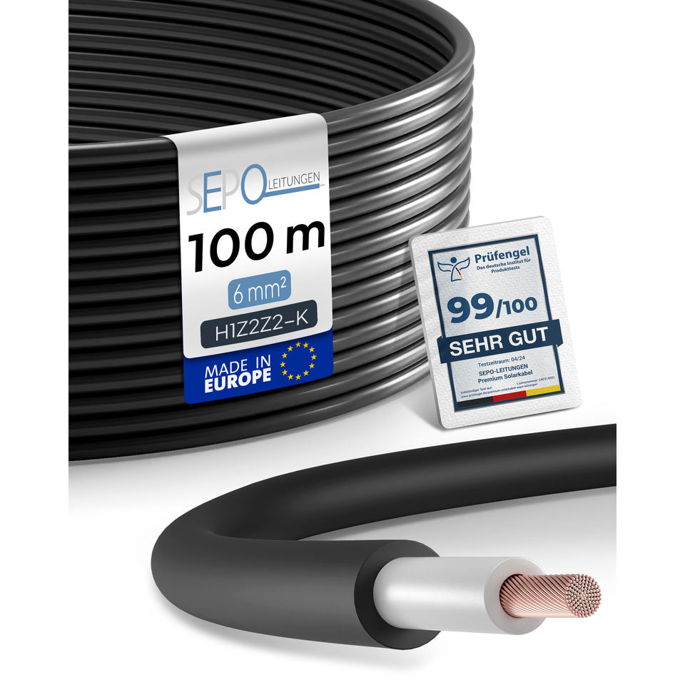 Cavo solare e accessori, H1Z2Z2-K Solar 6mm² Nero - 100 metri