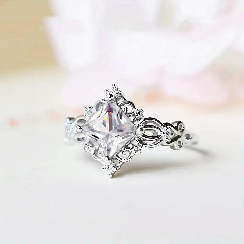 H223 Women's Aquamarine Ring Princess Cut Natural Gemstone Prong Setting Engagement Fashion Rings Geometric Design