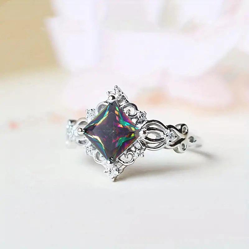 H224 Geometric Topaz Ring 925 Silver Princess Cut Prong Setting Women's Engagement Gemstone Ring