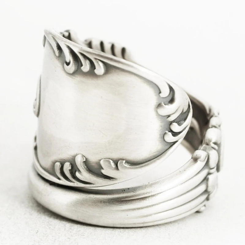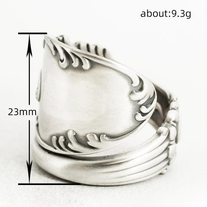 Anello H288 in Argento Placcato Anticato con Motivo Vegetale, Anello Unisex alla Moda, Idea Regalo