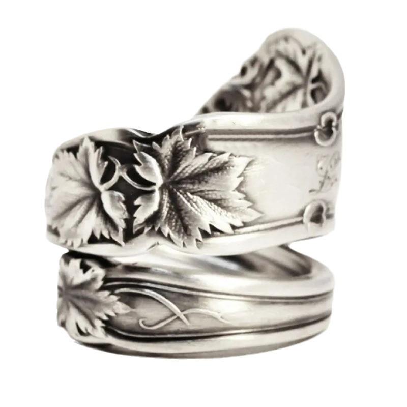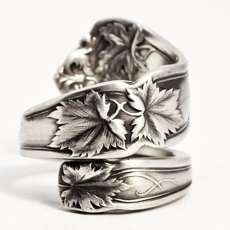H328 Vintage Stainless Steel Wedding Bands Plant Pattern Rings Unisex Fashion Jewelry