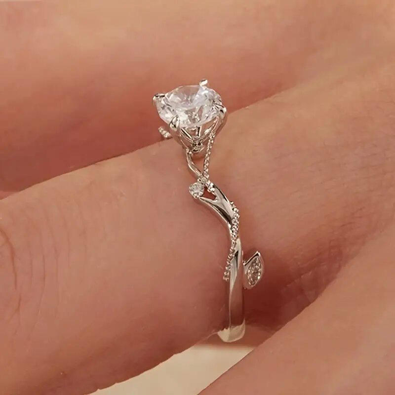 H363 Diamond Ring White Gold Round Brilliant Cut Natural Diamond Engagement Women's Jewelry G Color Side Stones