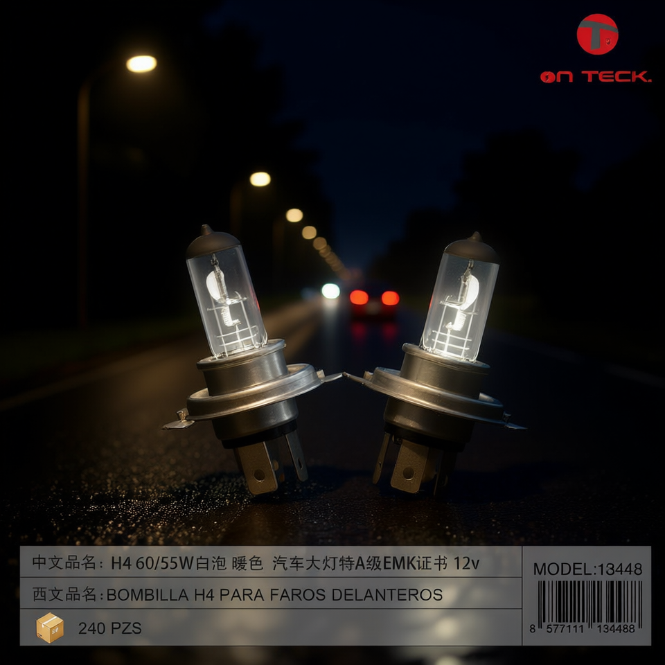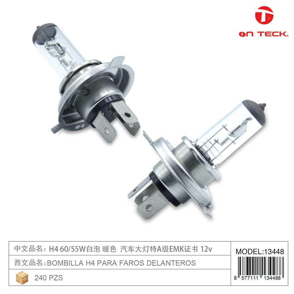 Lampadina Alogena On Teck H4 60/55W 12V Bianca per Sostituzione Fari Auto 13448