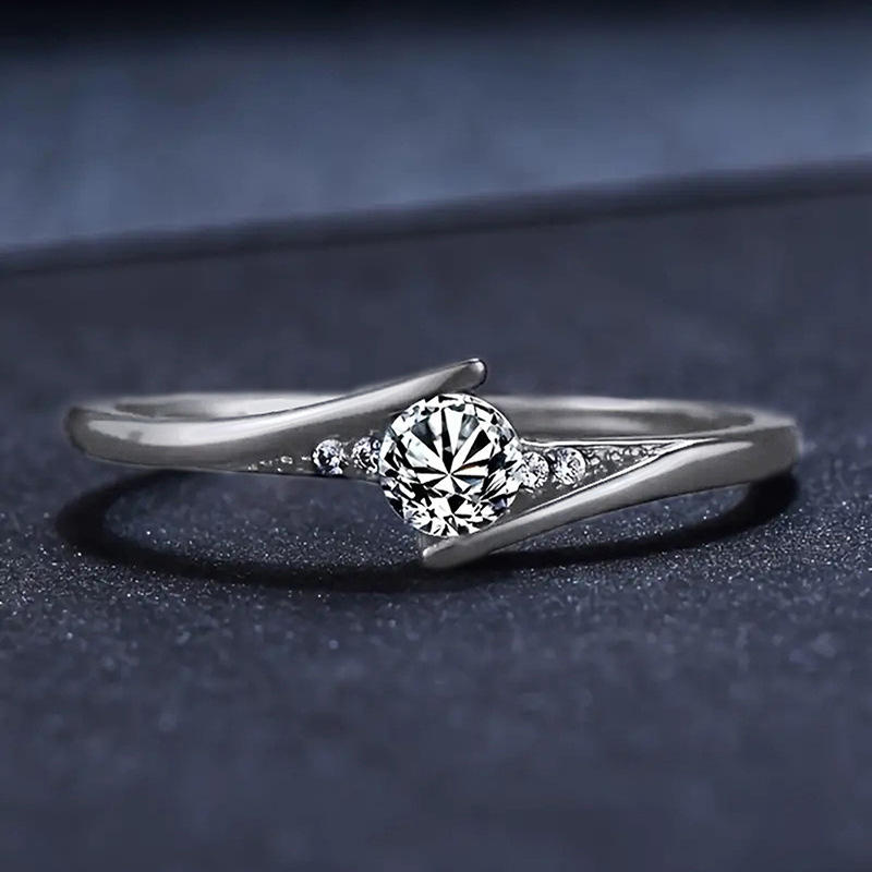 H421 Women's White Gold Diamond Ring Round Brilliant Cut Natural D Color Engagement Ring with Side Diamonds