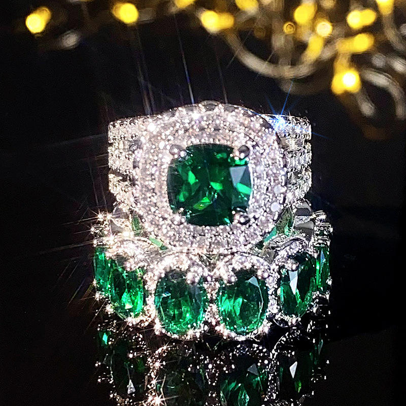 Anello Cocktail Smeraldo H461 in Oro Massiccio 18K con Incastonatura a Pavé, Taglio Ovale, Gioiello Raffinato da Donna per Fidanzamento