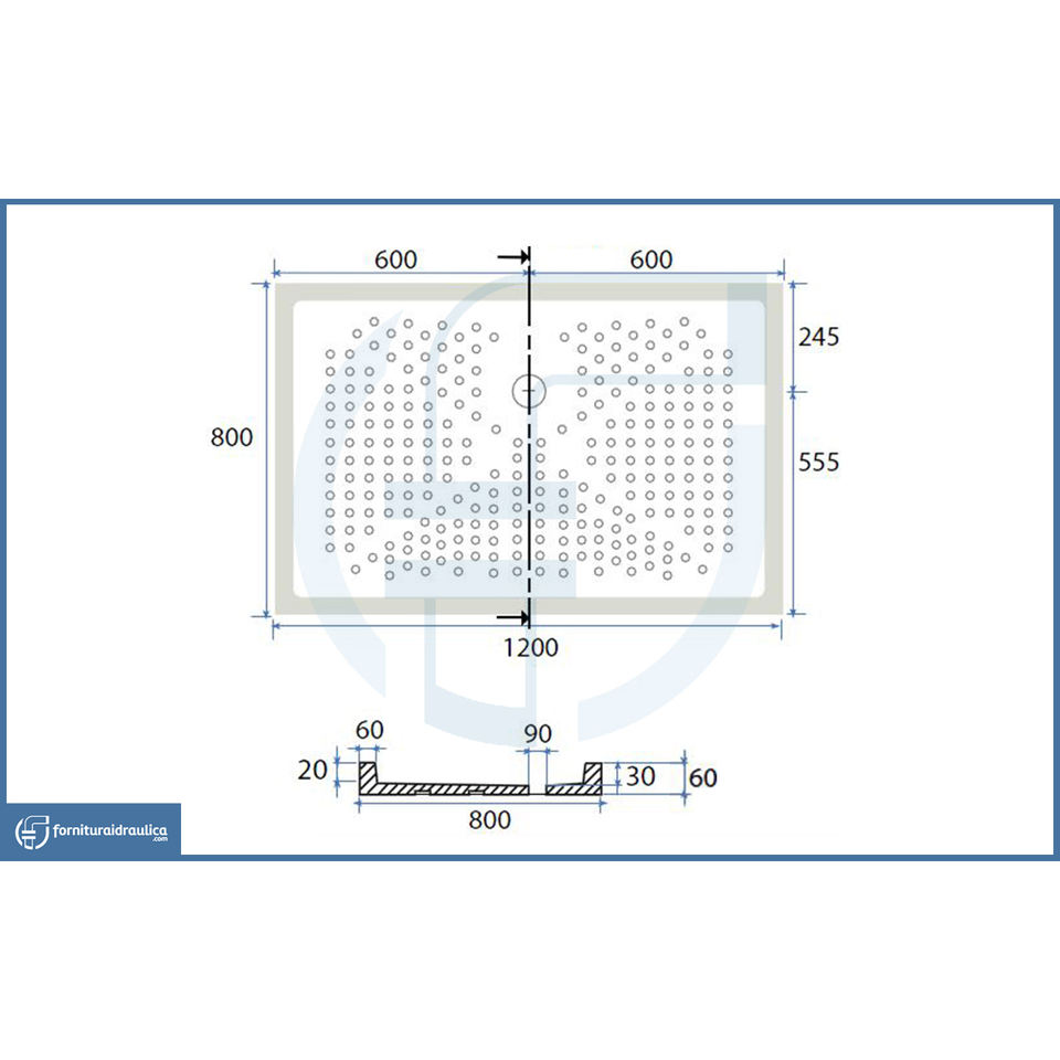 Piatto Doccia Rettangolare Moderno H6 80x120x6cm in Ceramica e Acrilico con Fibra di Vetro, Stile Diamante per Bagno e Hotel