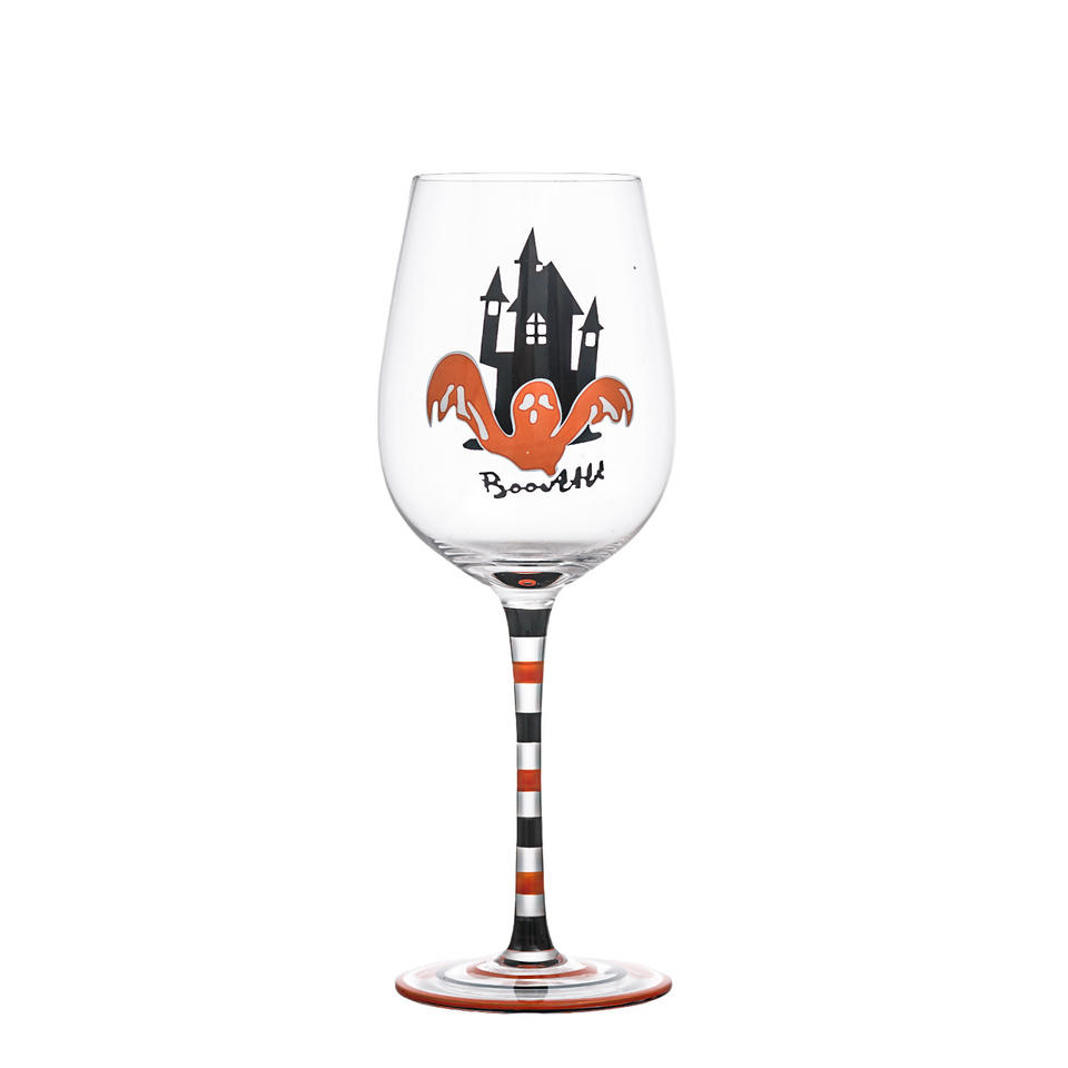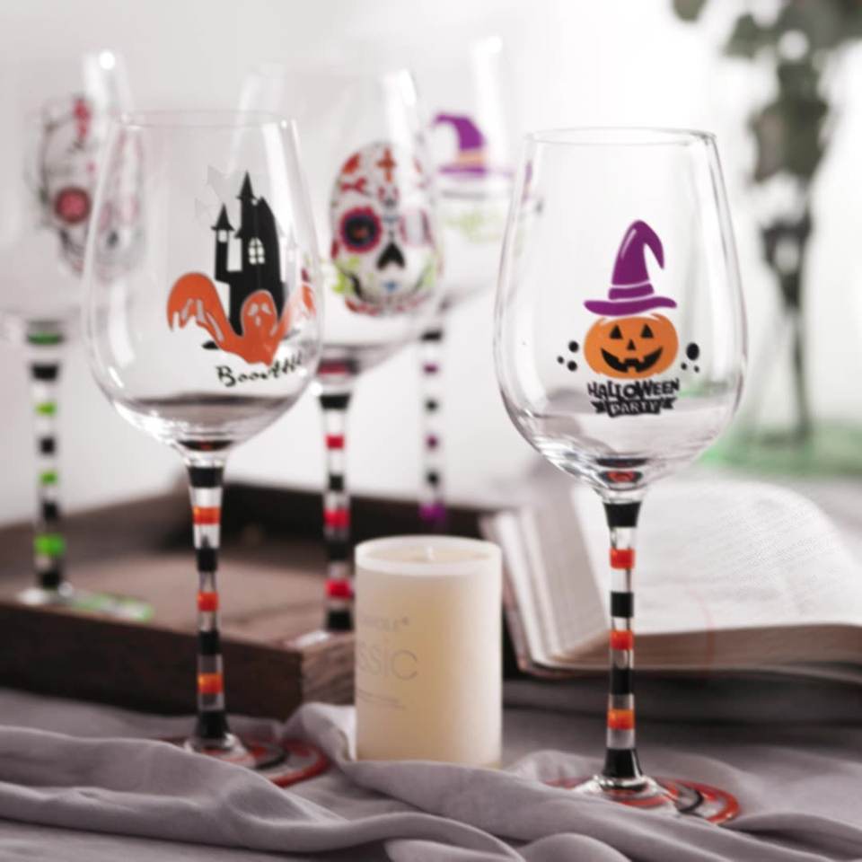 Calici in Vetro Stampati con Design Colorato a Tema HALLOWEEN, Bicchieri da Vino con Stelo a Sfera Colorata