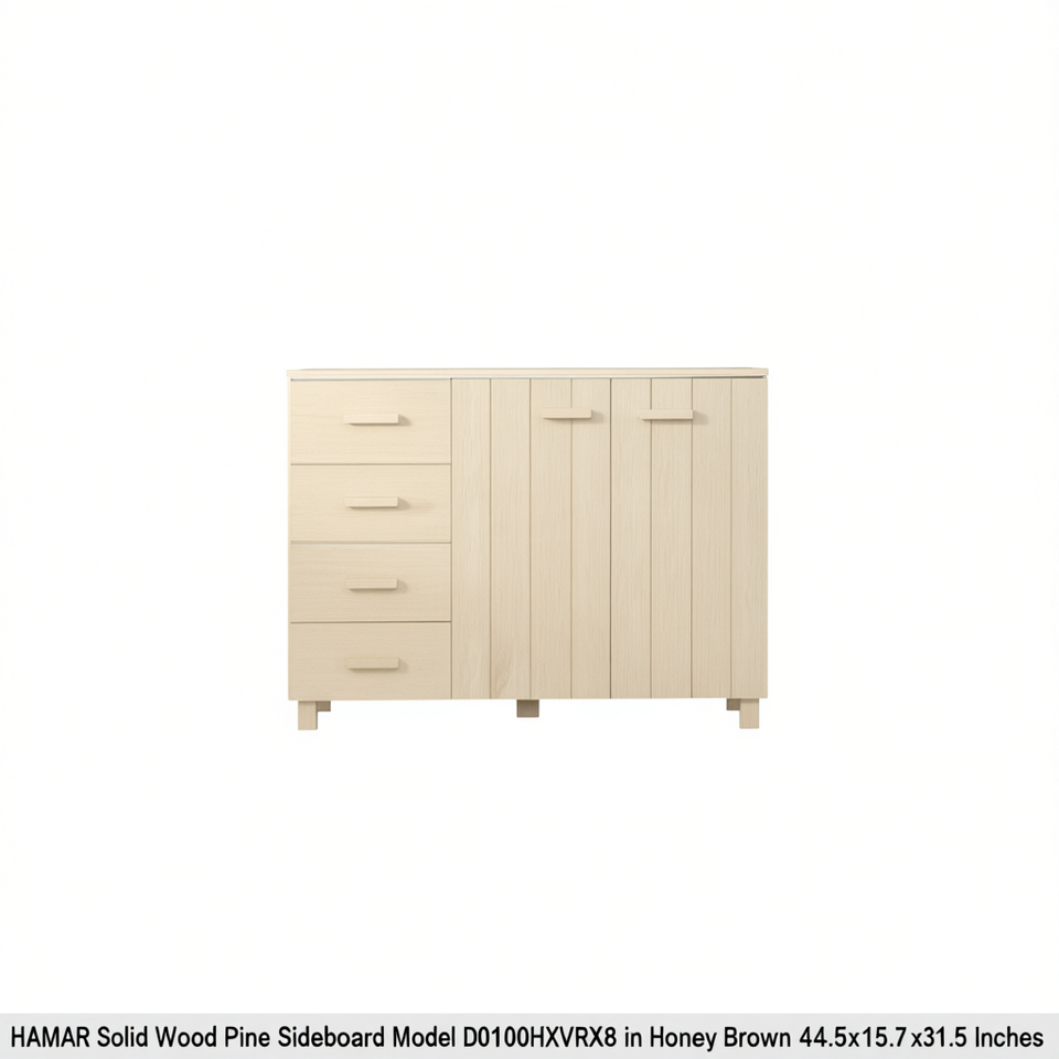 Credenza HAMAR in Legno Massello di Pino 44.5x15.7x31.5 Pollici Marrone Miele, Mobile Contenitore