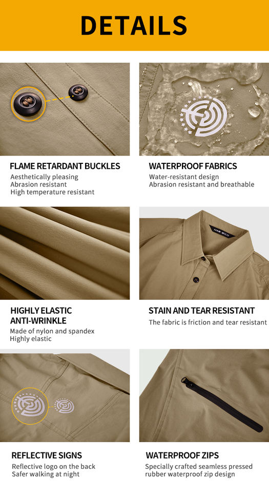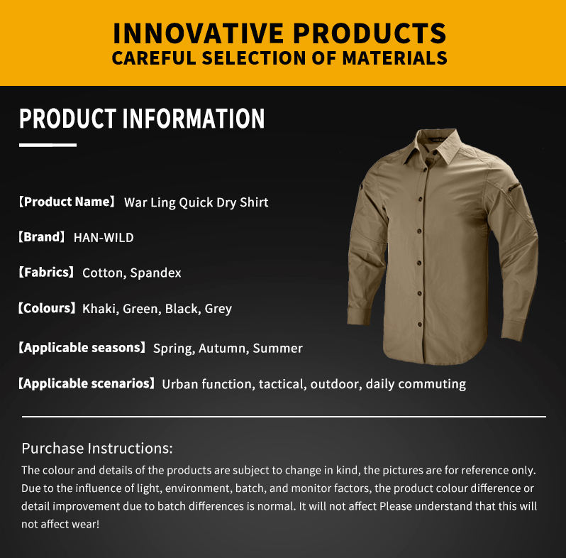 Camicia Casual da Uomo HAN WILD Tinta Unita, Impermeabile e Traspirante, Manica Lunga per Attività all'Aperto
