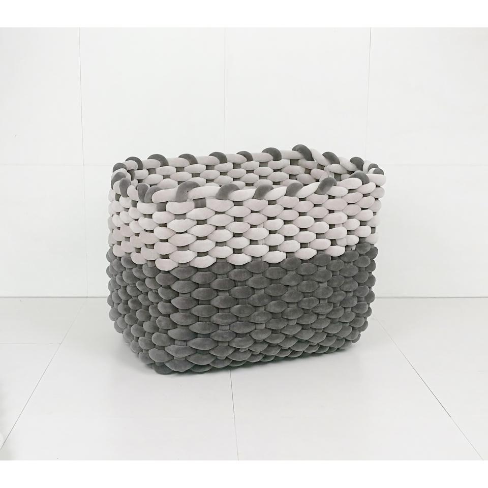 Cesto in Tessuto Morbido Intrecciato a Mano, Grigio e Bianco, 40x30x34cm