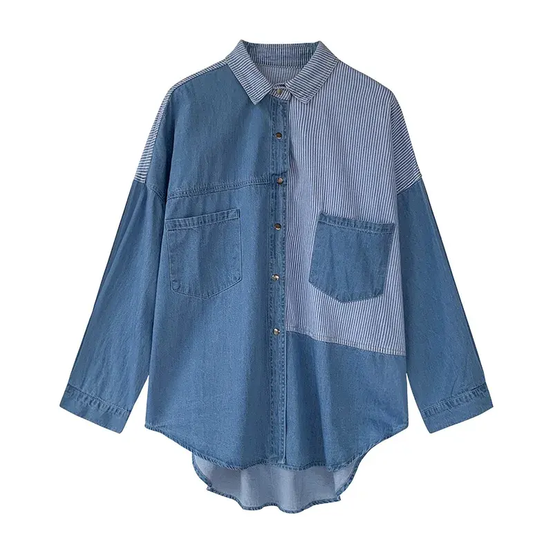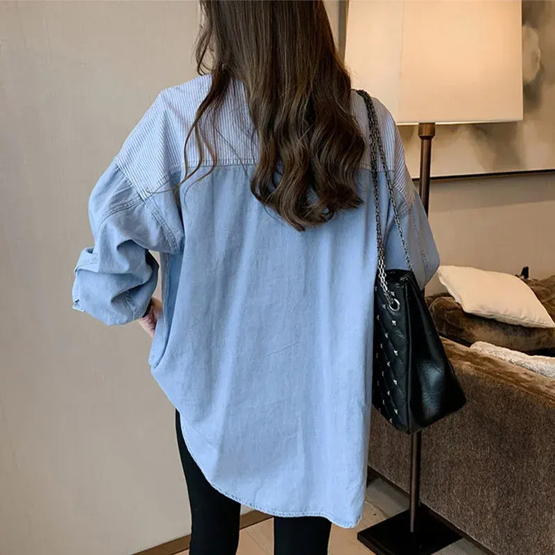 HANO Women Fashion Denim Shirts 2024 Spring Autumn Vintage Jean Blouse Female Long Sleeve Single-breasted Tops