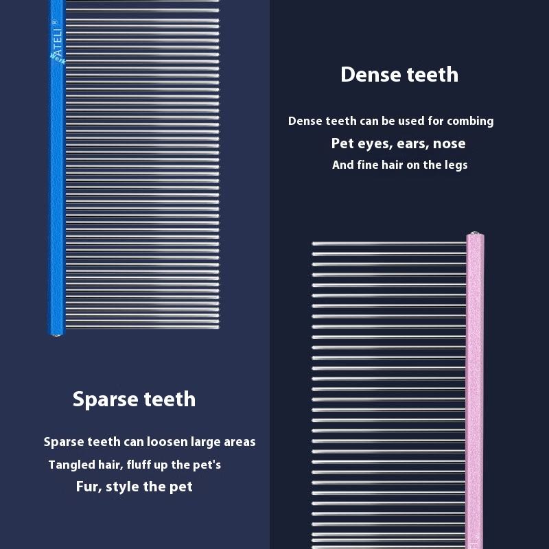 HATELI 16*5.2cm Eco-Friendly Metal Dog Comb for Long Hair Grooming Open Knot Straight Design All Seasons Pet Bathing & Cleaning