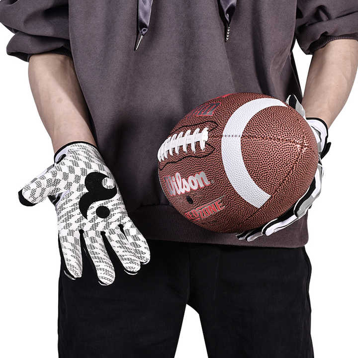 Guanti da Football Americano Professionali HBG 1071 Antiscivolo e Traspiranti con Guanti da Rugby in Silicone Completo