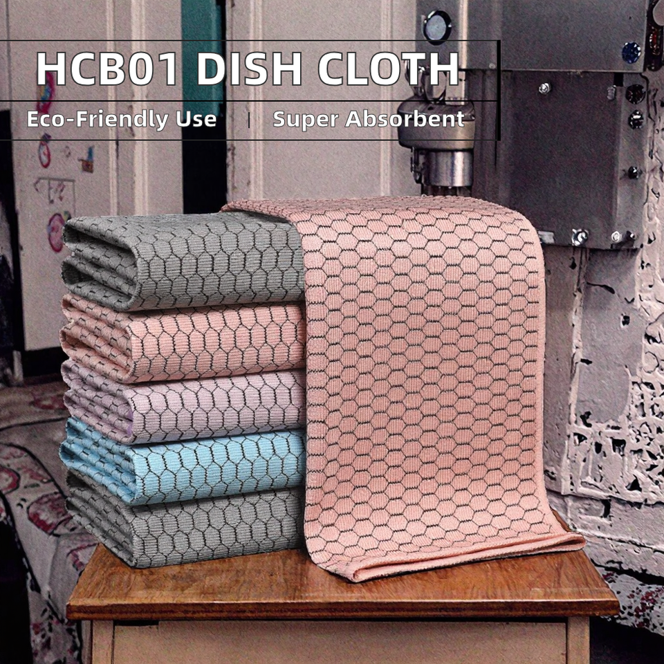 HCB01 panno per lavare piatti quadrato in microfibra facile da pulire a nido d'ape con scala di pesce 300gsm panno per la pulizia assorbente per la cucina