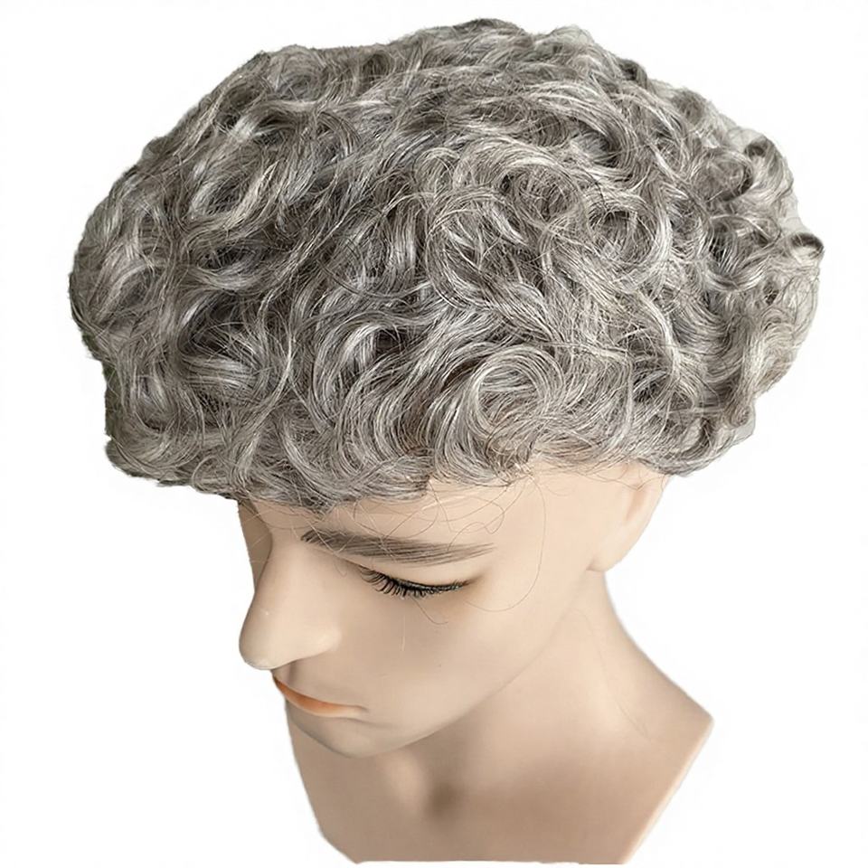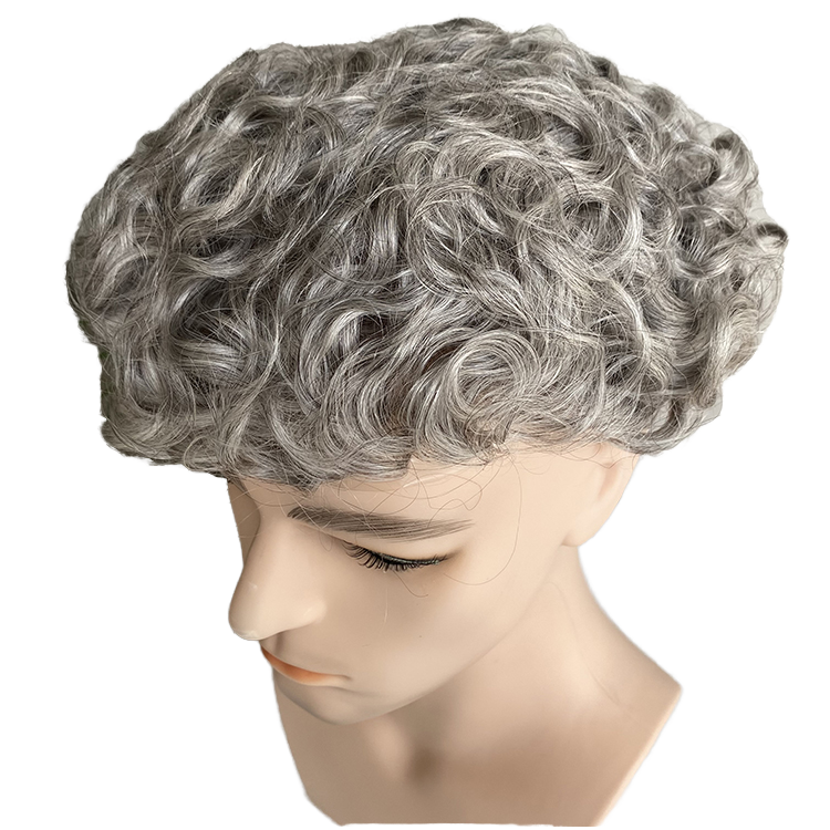 Protesi Capillare Uomo HD in Pizzo Francese, Sistema di Capelli Grigi Indiani Remy Naturali Ondulati, Densità 100% PU, Sostituzione Protesi Capillare