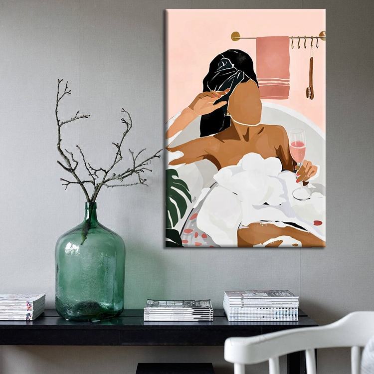 HD Pink Abstract Nordic Africa Sexy Girl Oil Painting on Canvas Wall Decor Girl Bedroom Decoration Woman on Bathtub Canvas Art