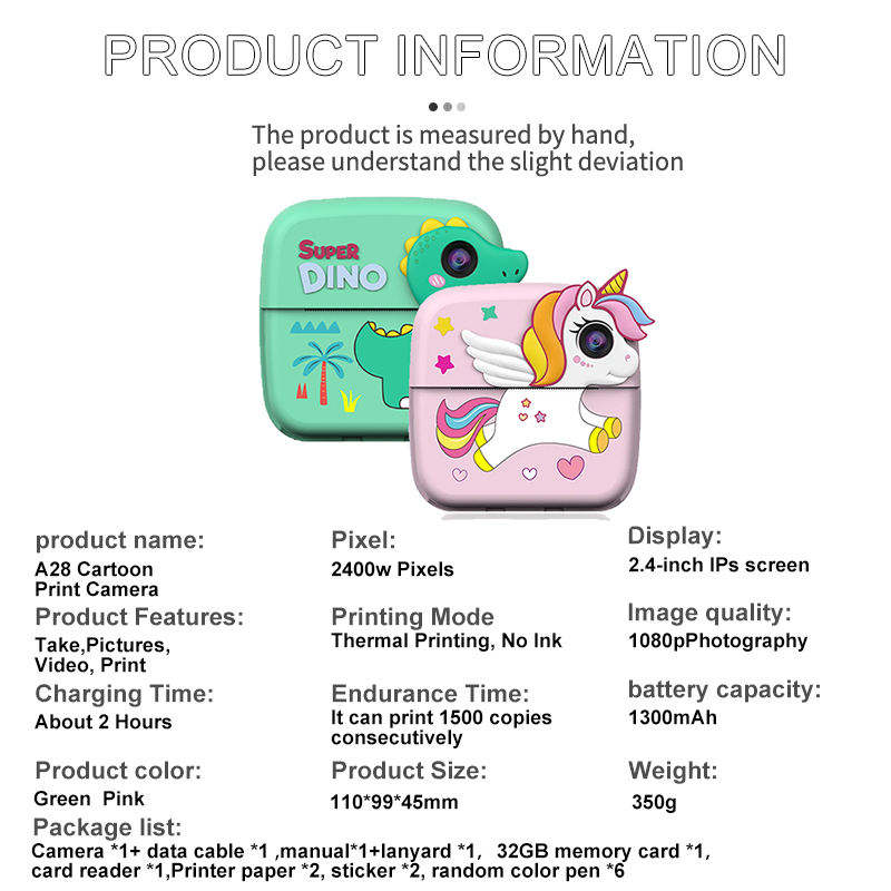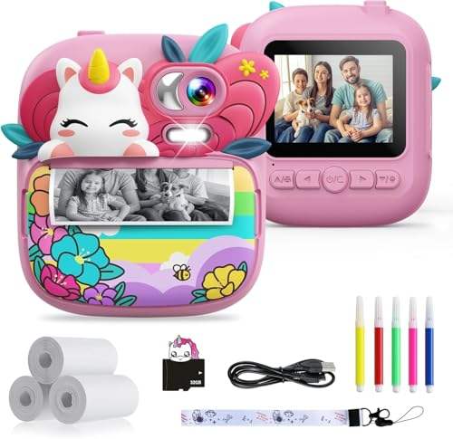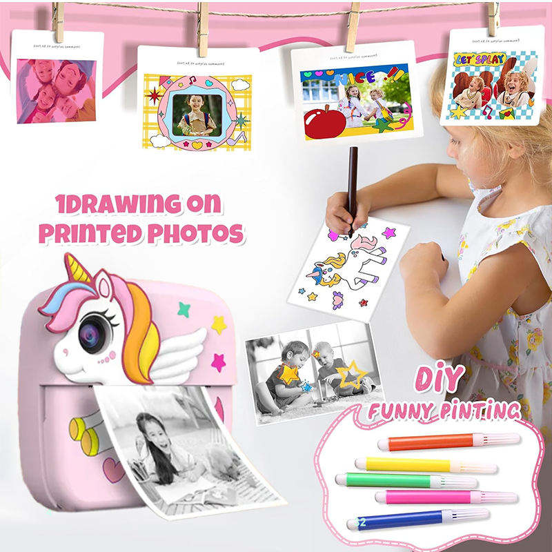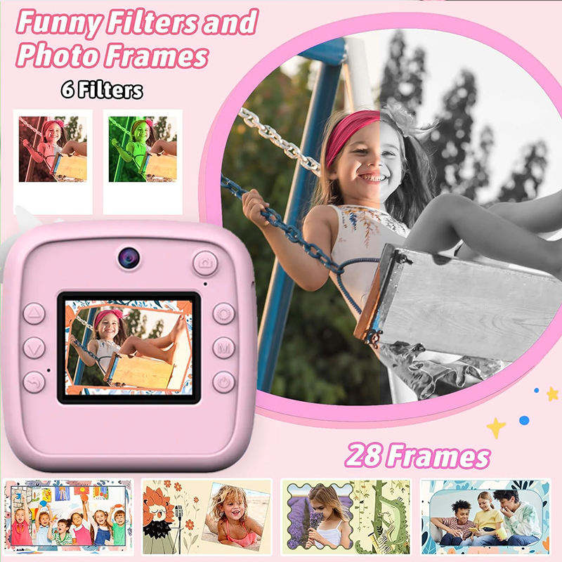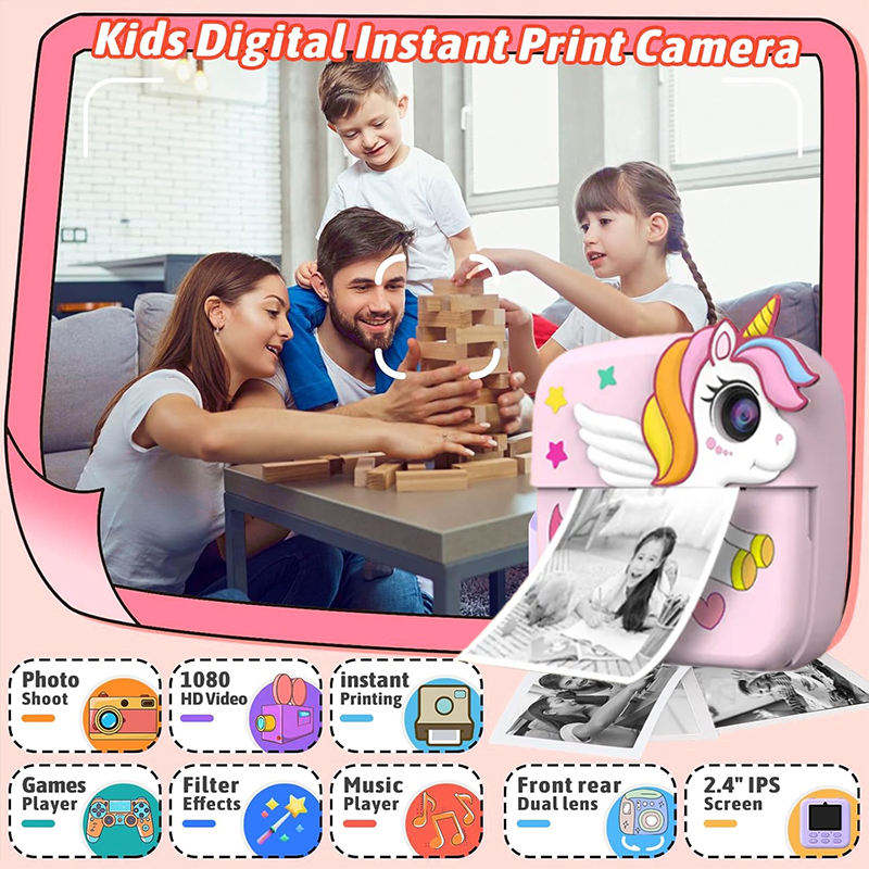 Fotocamera Wireless HD per Bambini con Stampa Istantanea, Stampante Fotografica Portatile Professionale Mini con Memoria Integrata da 32GB e Schermo da 2,4 Pollici