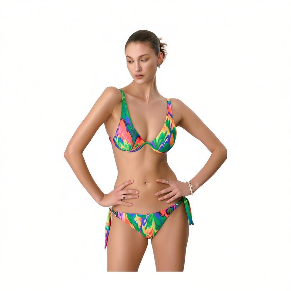 HDJ Bikini Set Colorful Print Tie Side Bottoms Push Up Top Size 42 44 46 48