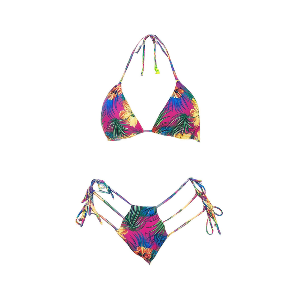 Set bikini HDJ con stampa tropicale, spalline regolabili, allacciatura incrociata sul collo, laccetti laterali, costume da bagno da donna, taglia 42 44 46 48