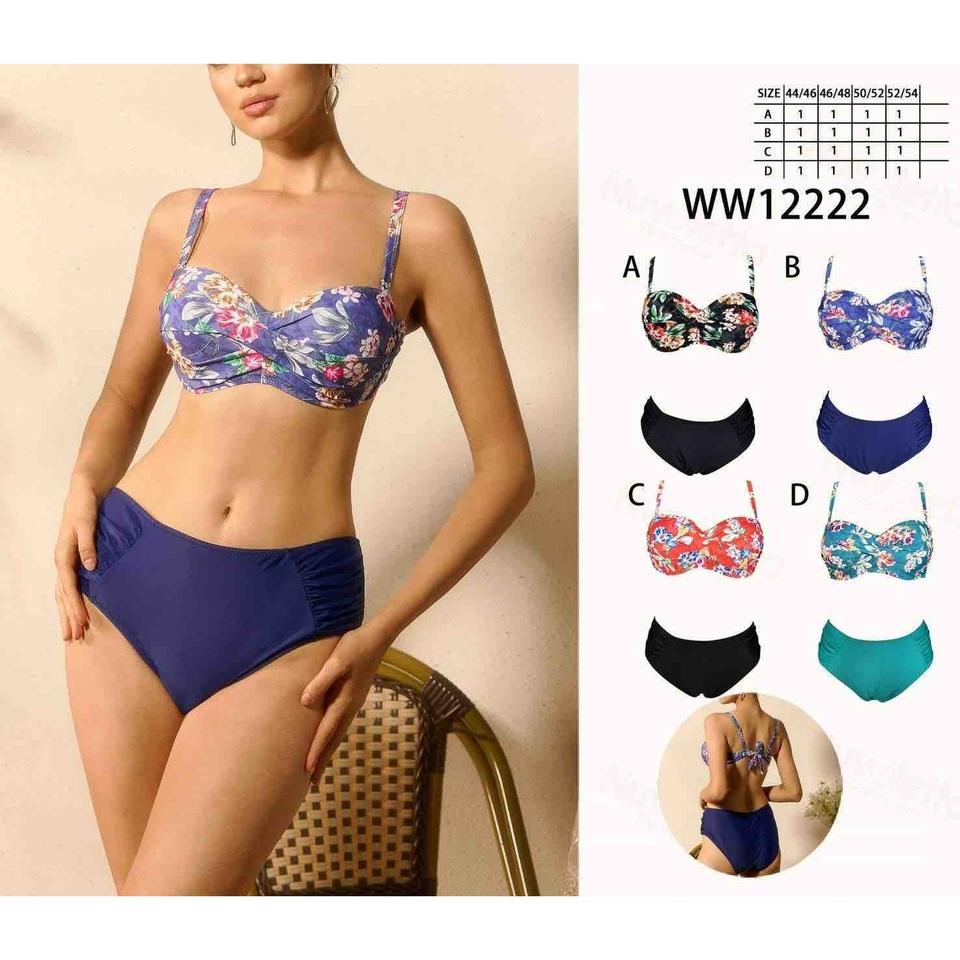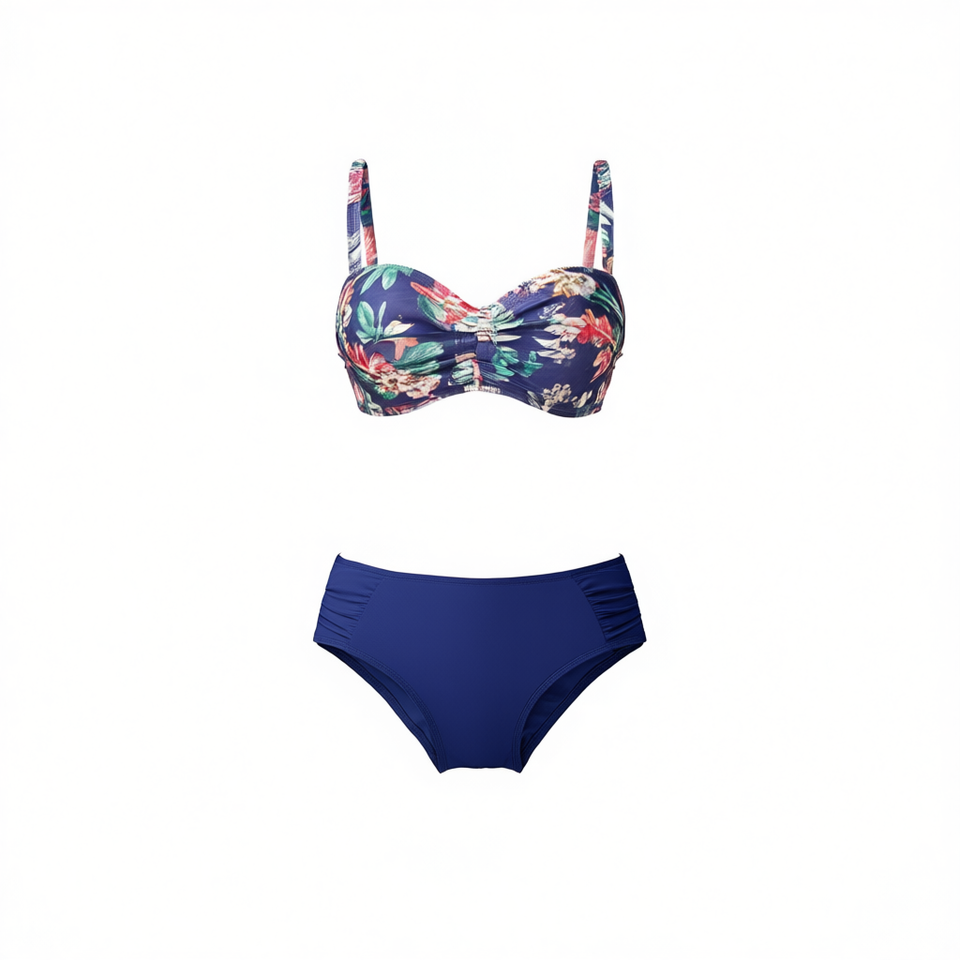 Set bikini HDJ Plus Size con stampa floreale, costume da bagno push-up a vita alta, costume da bagno da donna in 2 pezzi, blu floreale