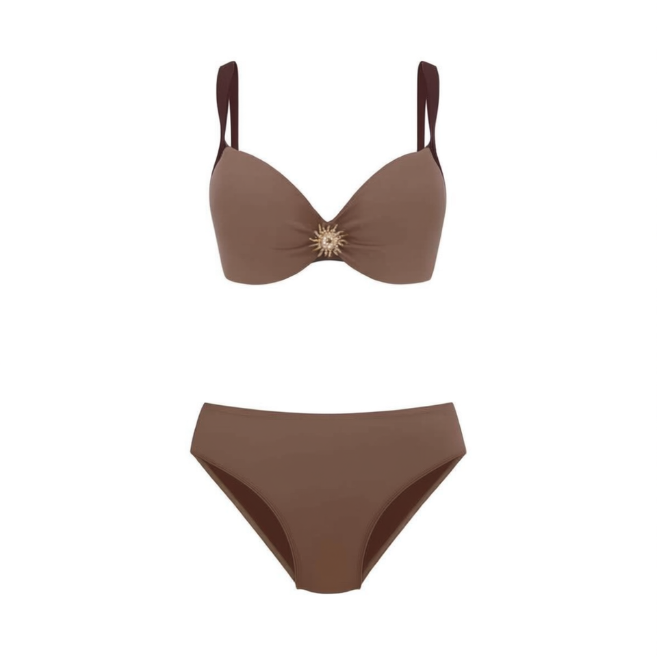 Costume da bagno bikini taglie forti HDJ con controllo pancia, top a fascia con dettagli strass per donna, taglie 46 48 50 52